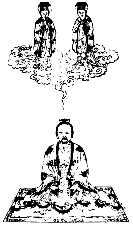 次思黄云从兆泥丸中入,兆乃口吸神云,咽津二过,结作二神,黄衮冕,下布小腹之内二孔之本,顺时吐息。